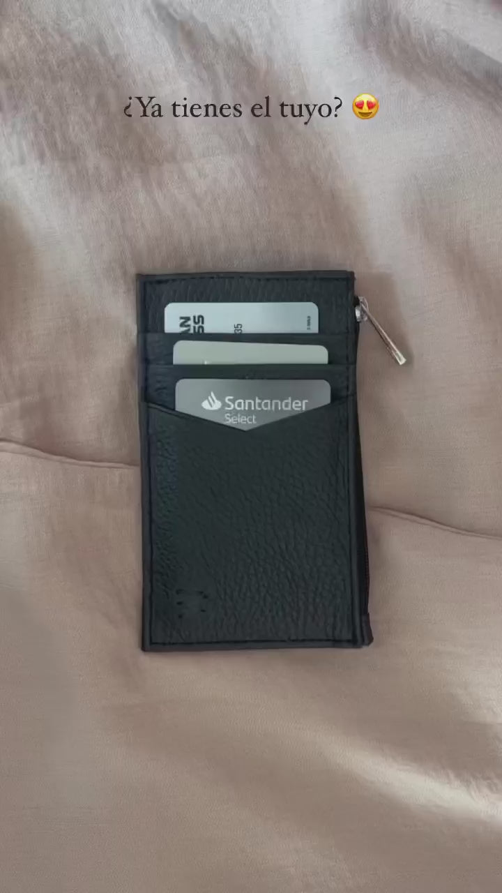 Tarjetero de piel genuina con cierre, hecho a mano en taller artesanal.
